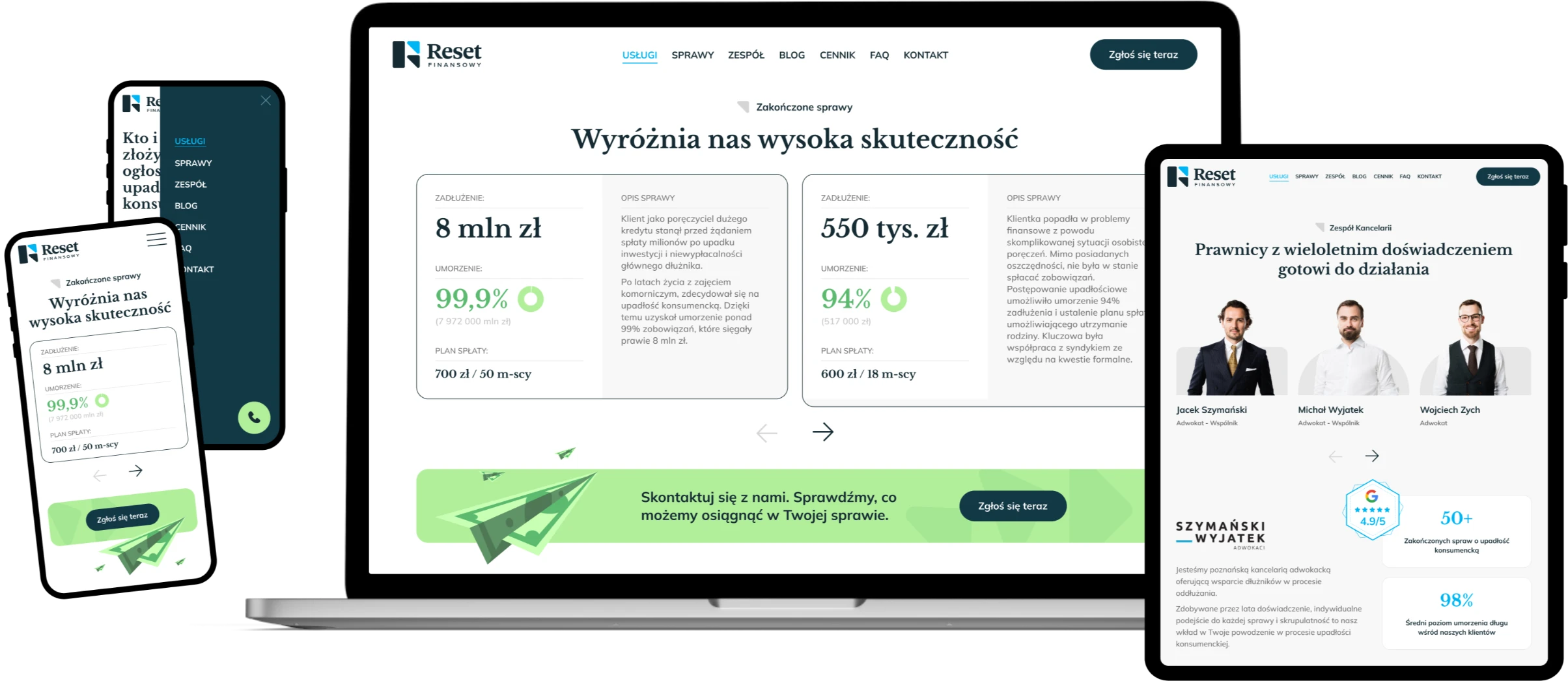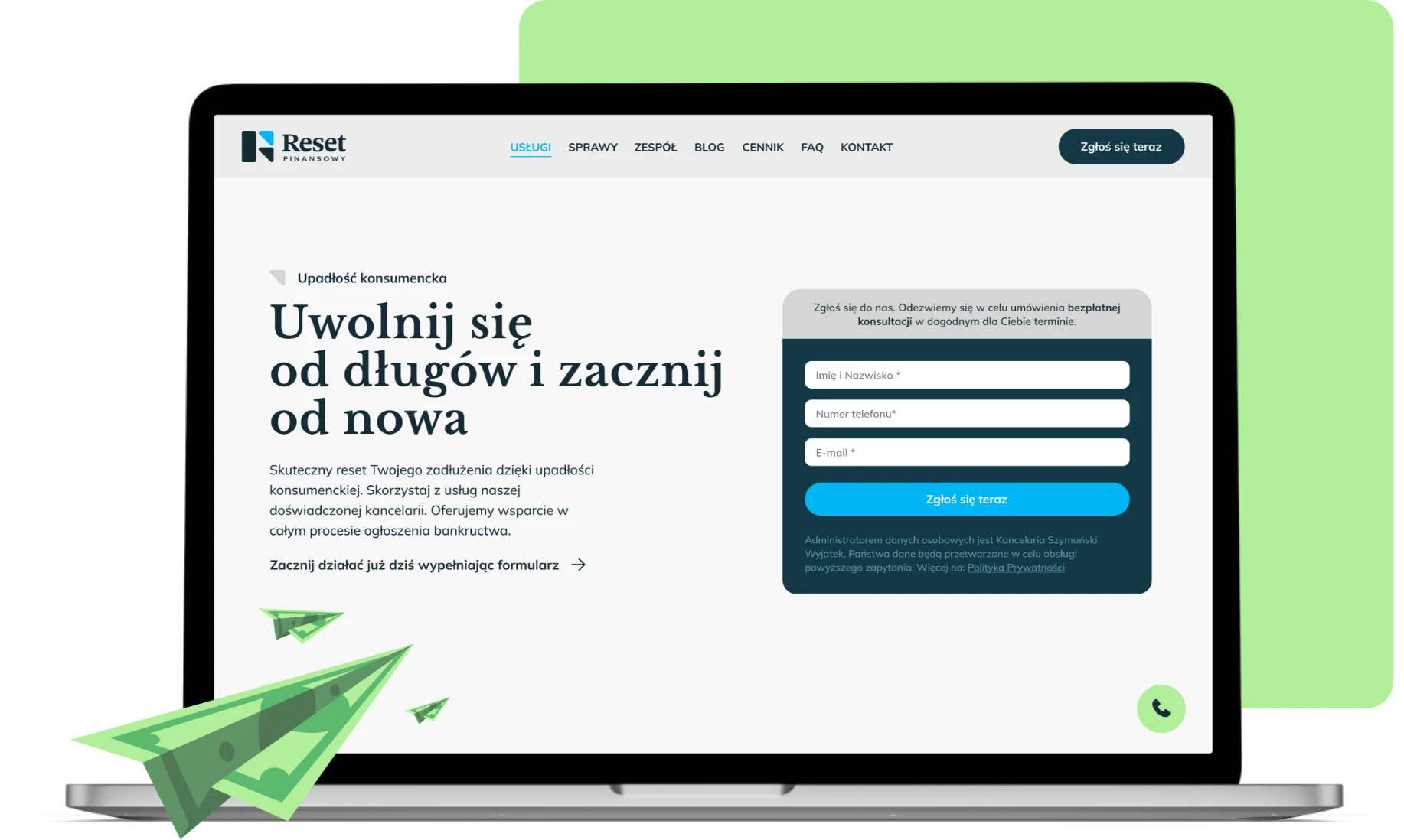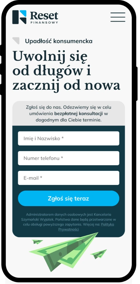 Landing page to specjalnie zaprojektowana strona internetowa, której celem jest zachęcenie odwiedzających do podjęcia konkretnego działania, np. wypełnienia formularza kontaktowego lub dokonania zakupu. W przypadku Reset Finansowy, landing page skutecznie buduje zaufanie do firmy i ułatwia pozyskiwanie nowych klientów zainteresowanych usługami związanymi z upadłością konsumencką.