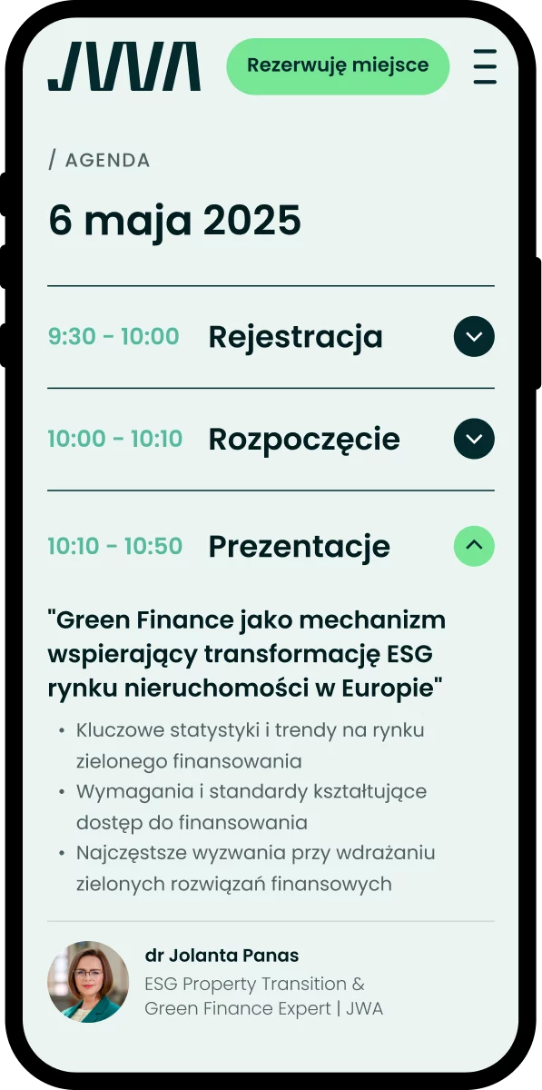 JW+A to krakowska firma doradcza specjalizująca się w zrównoważonym rozwoju, neutralności klimatycznej i efektywności energetycznej w sektorze nieruchomości komercyjnych. Oferuje wsparcie w zakresie certyfikacji ekologicznych (BREEAM, LEED, WELL), strategii ESG, raportowania (GRESB, CSRD, SFDR) oraz analiz dekarbonizacji. Dzięki zespołowi ekspertów i ponad 10-letniemu doświadczeniu firma pomaga tworzyć nowoczesne, energooszczędne i przyjazne środowisku budynki.
