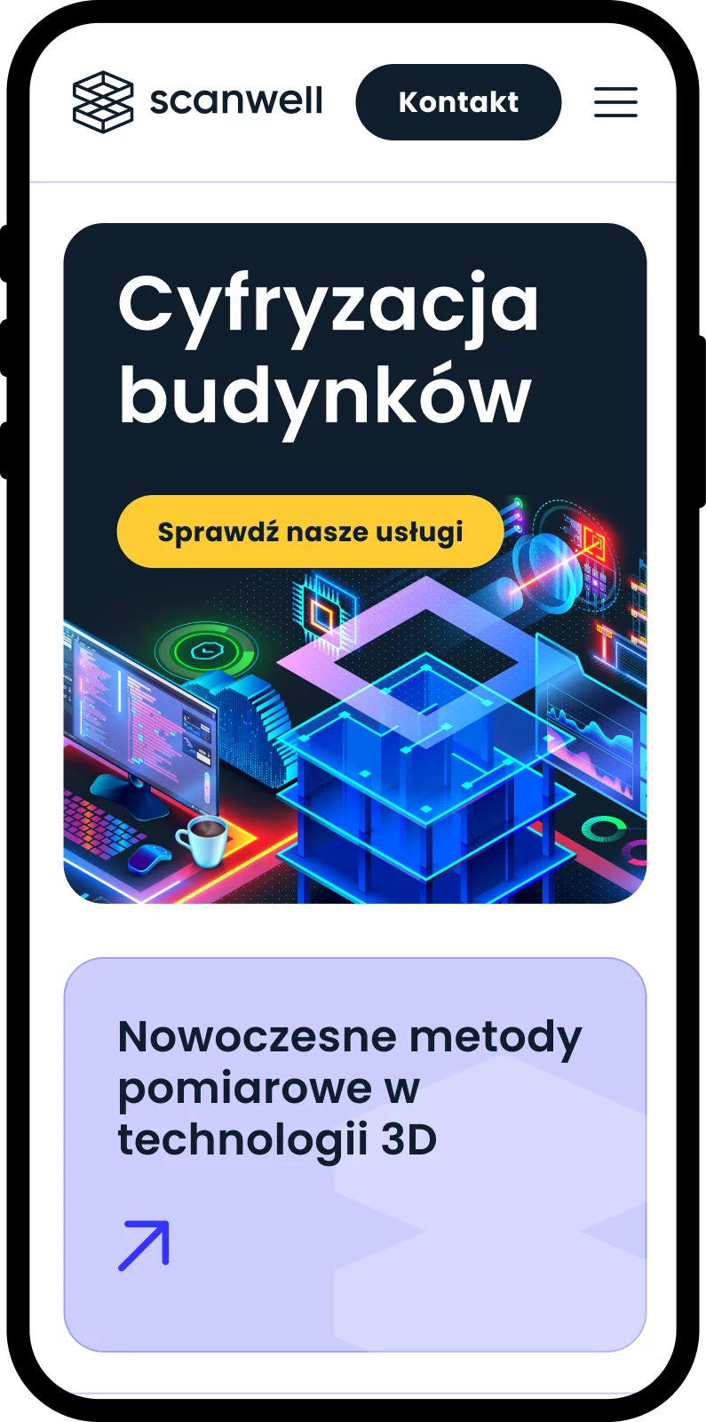 Dla Scanwell opracowaliśmy kompletną identyfikację wizualną, obejmującą logo, kolorystykę, typografię i elementy brandingowe. Bazując na charakterze i specjalizacji firmy, stworzyliśmy minimalistyczne logo nawiązujące do cyfryzacji i skanowania przestrzeni.