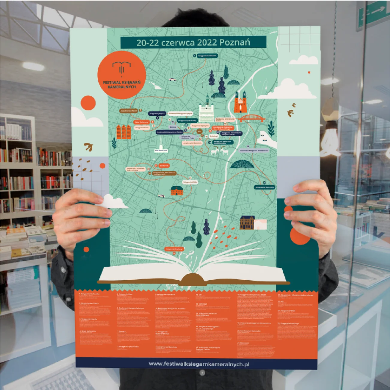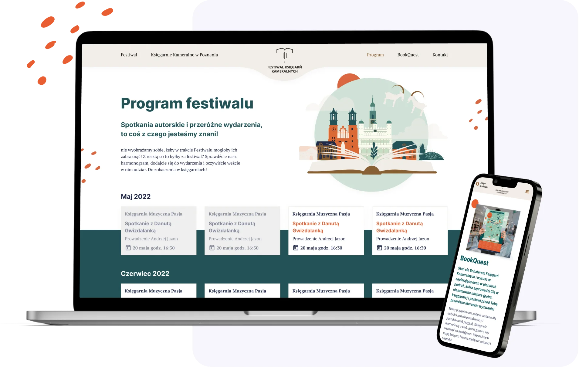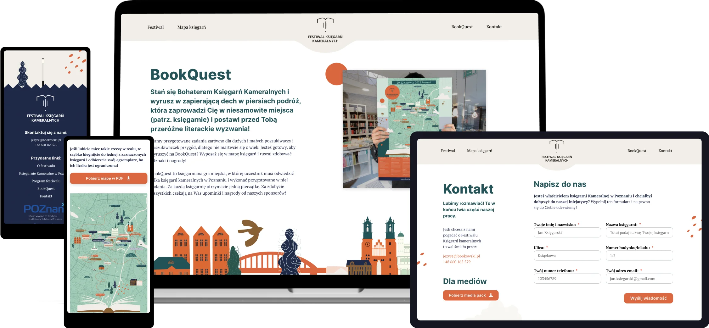 Zbudowaliśmy tu również kalendarz wydarzeń z opisami eventów i sylwetkami autorów. Strona miała też zachęcać kolejne księgarnie, aby dołączały do wydarzenia. W tym celu dodaliśmy formularz kontaktowy.
